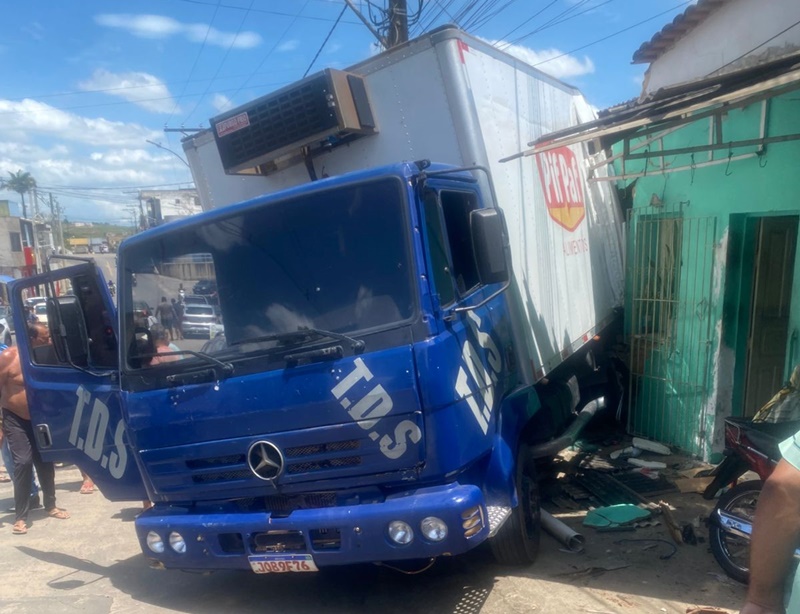Caminhão perde tração, desce desgovernado e atinge casa em Itamaraju