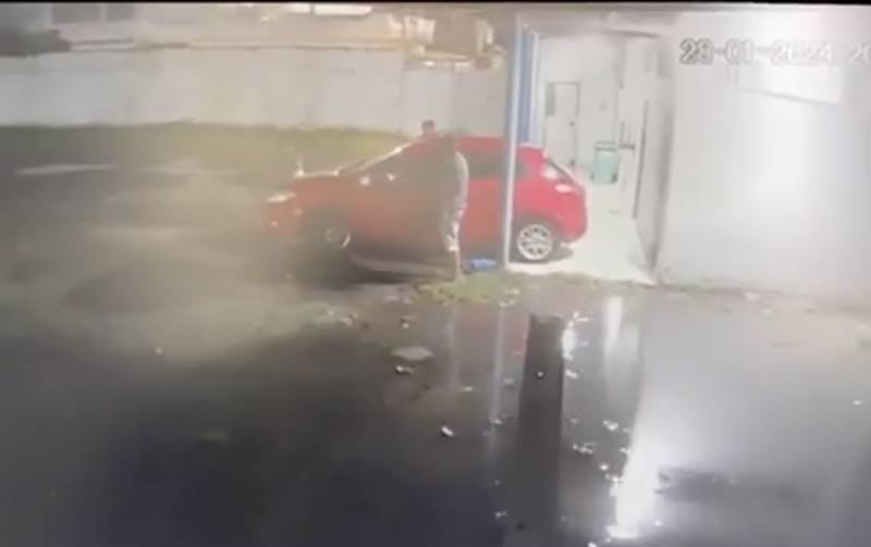 Ao analisar as imagens das câmeras do hospital, a polícia viu que dois homens entraram no estacionamento do local e colocaram os cilindros no porta-malas de um carro vermelho.