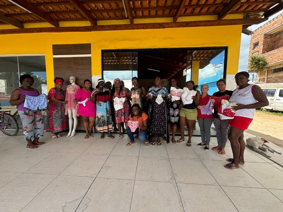 Da agulha ao fio de linha, mulheres do interior de Nova Viçosa estão costurando um futuro melhor para elas e suas famílias. Diariamente, um grupo de 20 costureiras se encontra na sede da Associação Quilombola da comunidade de Helvécia, unidas por um propósito comum: melhorar suas vidas por meio da fabricação de roupas íntimas femininas.