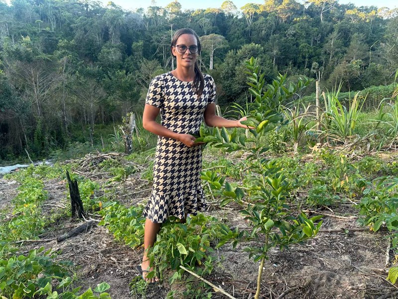 “O projeto foi implantado em 25 quintais, com recursos repassados pela Suzano. As mulheres associadas receberam mudas, insumos e orientação técnica. Já tivemos várias colheitas de mandioca e a expectativa é que as frutíferas comecem a produzir em poucos meses”, ressalta a agricultora Priscila de Jesus.