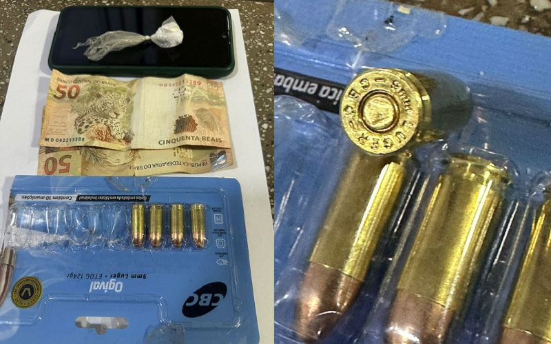Todo o material apreendido – um celular, quatro munições calibre 9 mm, um papelote de cocaína e R$ 100,00 em espécie – foi encaminhado ao Departamento de Polícia Técnica (DPT) para análise pericial.