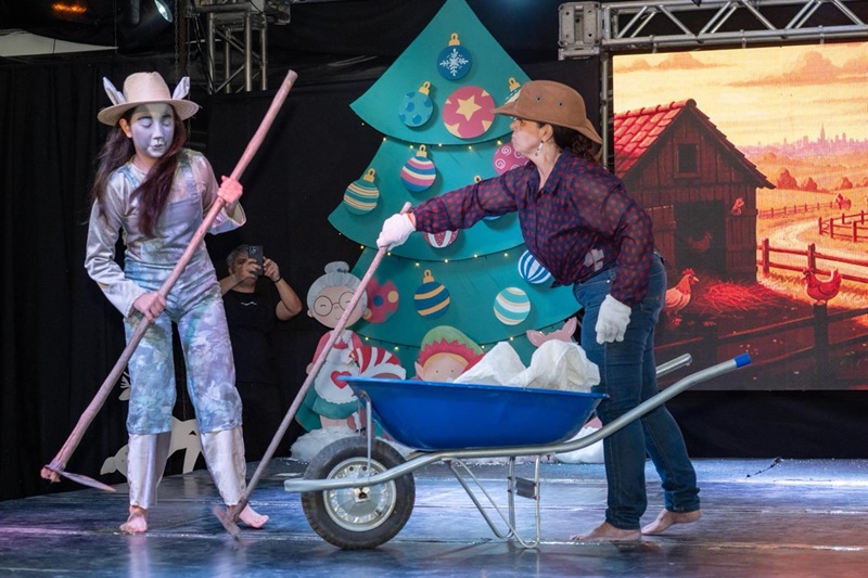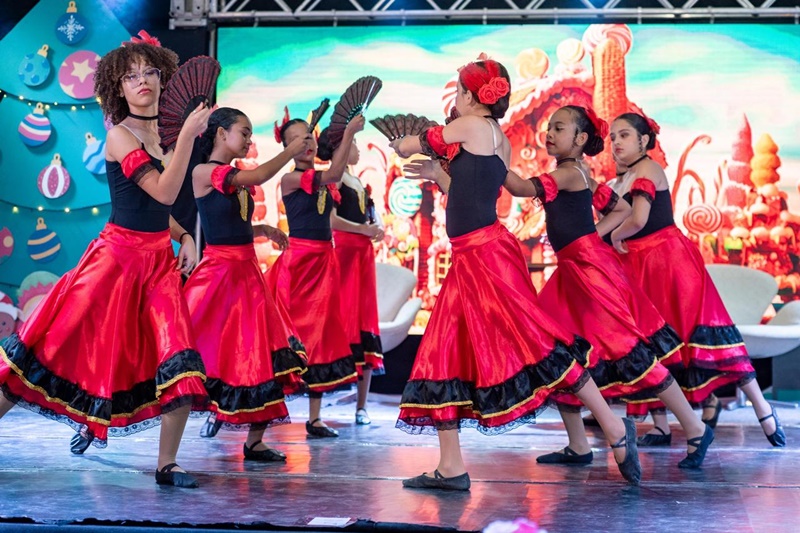 O teatro também esteve presente com a peça Saltimbancos, que integrou música e narrativa em uma apresentação voltada para todas as idades. Para encerrar, foi exibido o espetáculo de balé O Quebra-Nozes, que fechou a noite com uma apresentação clássica.