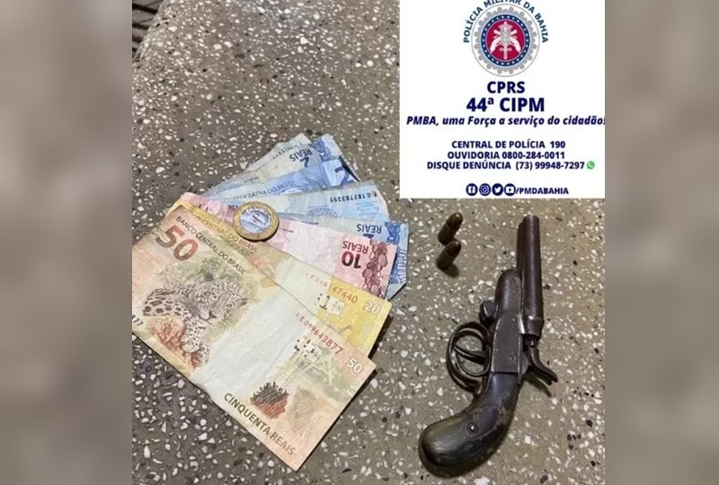 Diante das informações, a guarnição deslocou até o endereço indicado e os policiais foram autorizados a entrarem na residência, onde estava o acusado, de 25 anos, sendo realizada a busca pessoal no suspeito, e em seguida foi encontrado ainda dentro do imóvel, uma arma de fogo, marca Rossi Cal.22, n.133148, bem como duas munições CBC 9mm intactas.