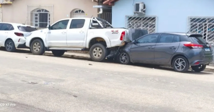 Com o impacto inicial, a motorista do Yaris não conseguiu retomar o controle da direção. O veiculo, desgovernado, seguiu avançando e colidiu contra a traseira de uma caminhonete Hilux que estava estacionada às margens da via. A força da batida lançou a Hilux contra um Chevrolet Onix que estava estacionado às margens da via, causando danos significativos à parte traseira do automóvel. Apesar do triplo impacto, os airbags do Toyota Yaris não foram acionados.