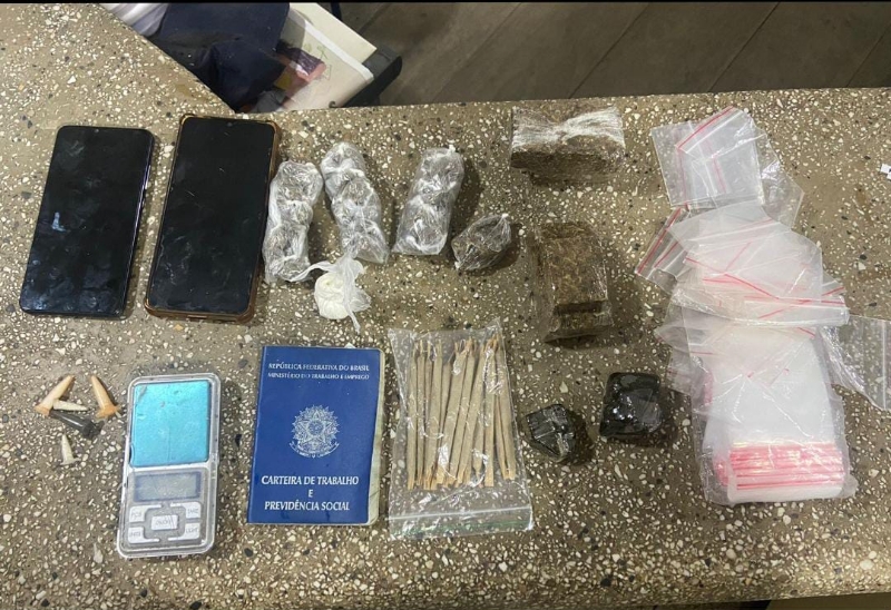Três horas depois, já na madrugada de domingo, na Avenida Presidente Getúlio Vargas, em frente a Unidade de Pronto Atendimento (UPA), a PM prendeu dois suspeitos, um de 24 e outro de 29 anos, com 260 gramas de maconha, 13 gramas de cocaína e 25 gramas de haxixe, além de uma balança de precisão. Eles estavam a bordo da motocicleta JTZ/DR 160, de cor vermelha, placa RPO 7046.