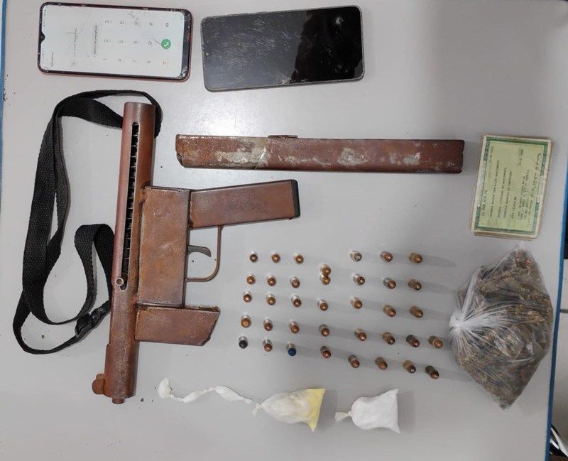 PM apreende submetralhadora artesanal e drogas em Mucuri