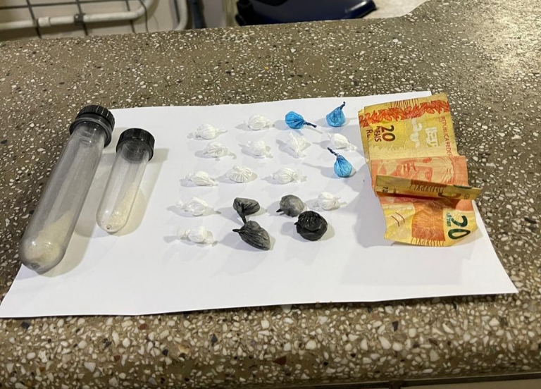 Durante a tentativa de fuga, os menores dispensaram dois frascos contendo cocaína. Após a abordagem, foi constatado que ambos estavam em posse de 19 pinos da droga, que foi apreendida e apresentado na Delegacia de Polícia da cidade, juntamente com os adolescentes, de 16 e 17 anos.