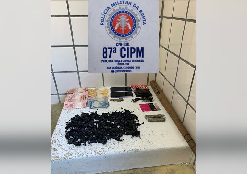 Além das substâncias ilícitas, a polícia também apreendeu dois celulares, um cordão dourado, carteira com cartões bancários e uma quantia de R$ 255, suspeitos de serem provenientes de atividades ilícitas.