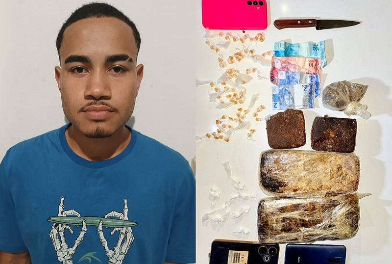 Inicialmente, o suspeito negou envolvimento com o tráfico, mas depois admitiu a prática do crime, alegando necessidade financeira. Clayton confessou que vendia maconha e crack para um indivíduo conhecido como “Bajon” e indicou o local onde escondia a droga. Com ele, foram apreendidos aproximadamente 2,6 kg de maconha; 74 porções de crack; 20 papelotes de cocaína; R$ 119,00 em dinheiro e três aparelhos celulares.