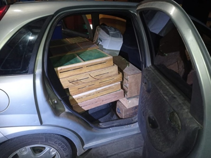 Em seguida, os policiais realizaram os procedimentos de fiscalização e após uma revista no carro foram encontradas cerca de 2.000 pássaros e jabutis que estavam amontoados no interior do veículo e também no porta-malas.