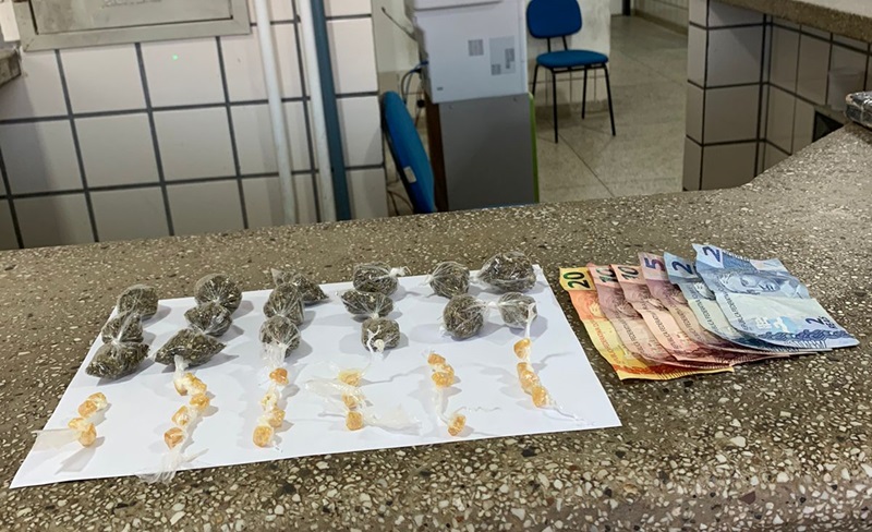 A ação policial resultou na apreensão de 24 pedras de crack, 16 papelotes de maconha e a quantia de R$ 49 em posse do suspeito. A abordagem ocorreu após os policiais perceberem atitudes suspeitas por parte do indivíduo. Ao avistar a aproximação da viatura, ele tentou fugir, mas foi alcançado e, após abordagem, a polícia encontrou o material ilícito.