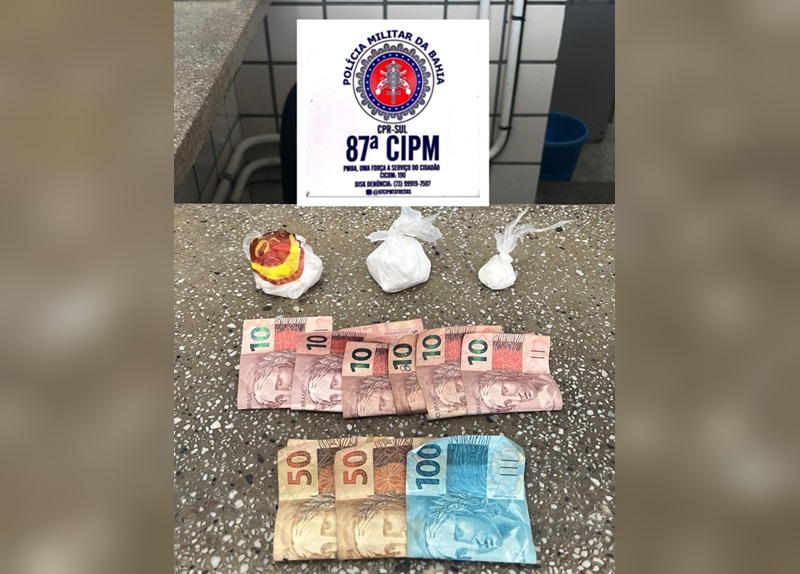 A Polícia Militar prendeu em flagrante, na cidade de Teixeira de Freitas, na manhã desta quinta-feira, 2 de março, um homem com 107 gramas de cocaína, divididas em três porções. Ele estava com R$ 260 que pode ser dinheiro da venda da droga.