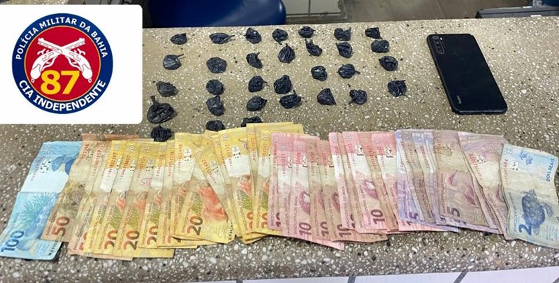 Policiais da 87ª Companhia Independente de Polícia Militar prenderam um homem com 31 papelotes de cocaína e R$ 769 na tarde deste sábado, 4 de fevereiro, na cidade de Teixeira de Freitas.