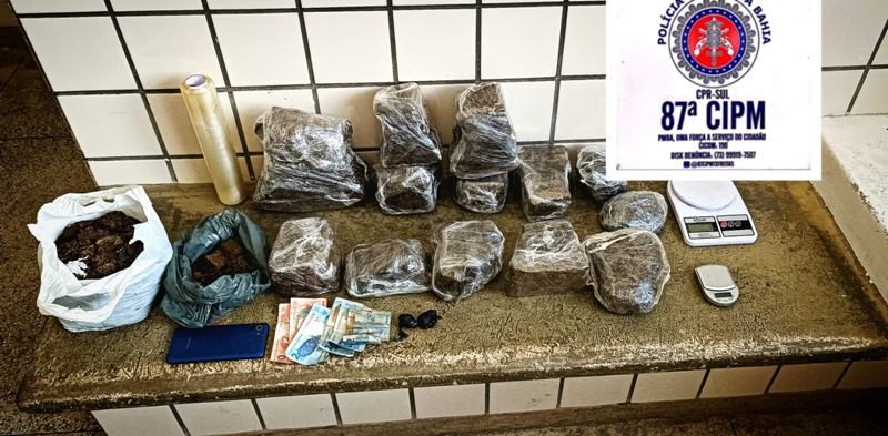 A Polícia Militar prendeu um homem nesta segunda-feira, 30 de janeiro, por volta das 10h30, com 10 quilos e 389 gramas de maconha, na cidade de Teixeira de Freitas.