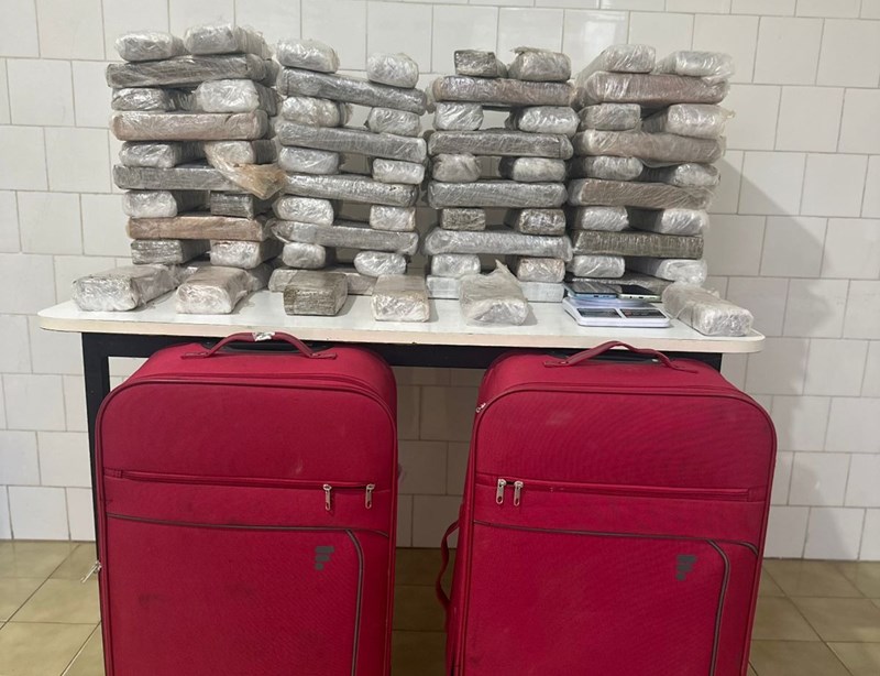 Foram apreendidos 86 tabletes de maconha, totalizando cerca de 54 kg, além de uma balança de precisão, dois aparelhos celulares e uma chave de motocicleta. Um adolescente de 15 anos também foi localizado e apreendido.