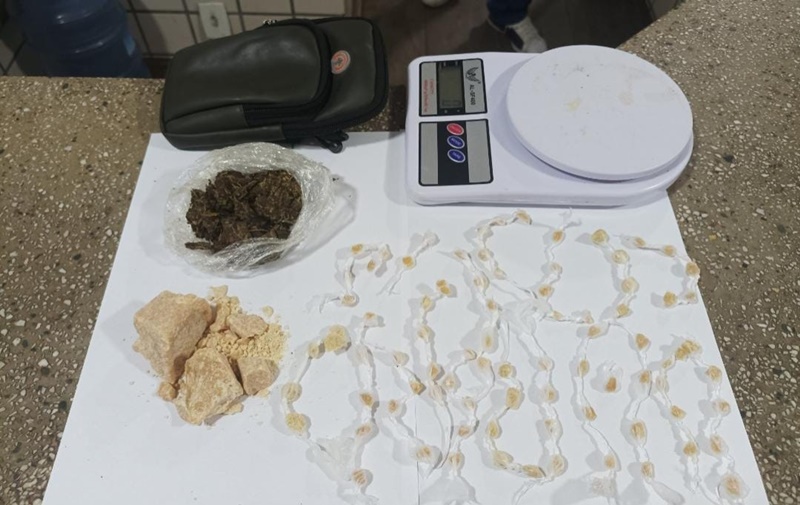 Com a fuga dos suspeitos, a guarnição decidiu realizar uma incursão no local, resultando na localização do entorpecente. Foram encontrados 32 gramas de maconha, 83 pedras de crack, uma pedra bruta da mesma droga, pesando 65 gramas, e uma balança de precisão, que é utilizada para a pesagem e fracionamento de drogas.