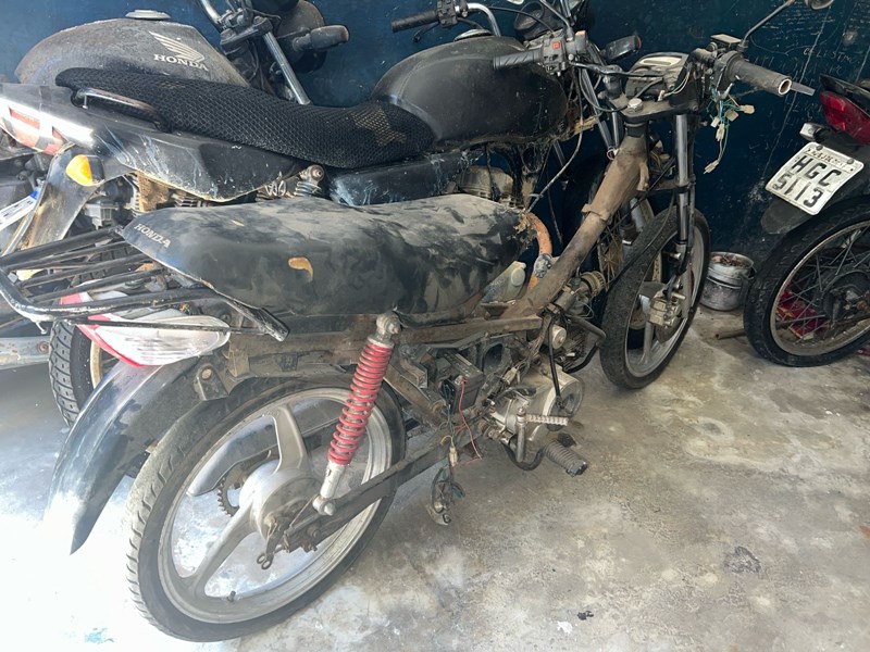 Durante a diligência, foram encontradas diversas peças e motocicletas em situação suspeita. A verificação apontou que um dos motores possuía restrição de roubo/furto registrada em Linhares (ES), conforme boletim datado de 2011. Também foi identificada uma motocicleta de 50cc com placa incompatível e outra em avançado estado de deterioração, cujo motor apresentava sinais de adulteração.