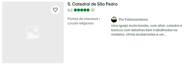 Um levantamento realizado com base em avaliações de viajantes no site Tripadvisor apontou os cinco pontos turísticos mais bem avaliados do município. A lista reúne espaços culturais, religiosos, de lazer e compras, evidenciando a diversidade de atrativos oferecidos pela cidade.