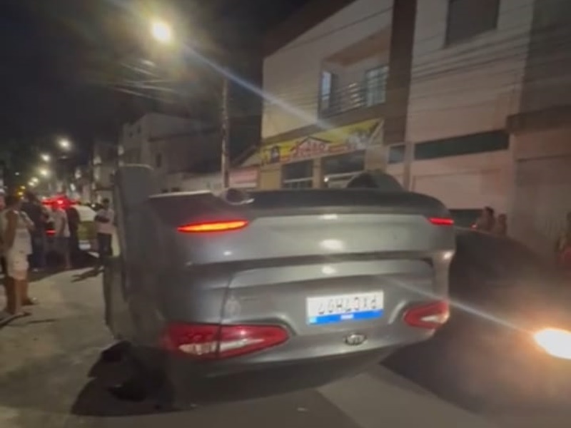 Vídeo: carro capota em acidente na Avenida Padre Anchieta em Teixeira de Freitas